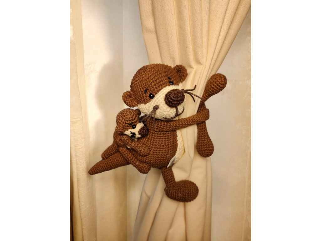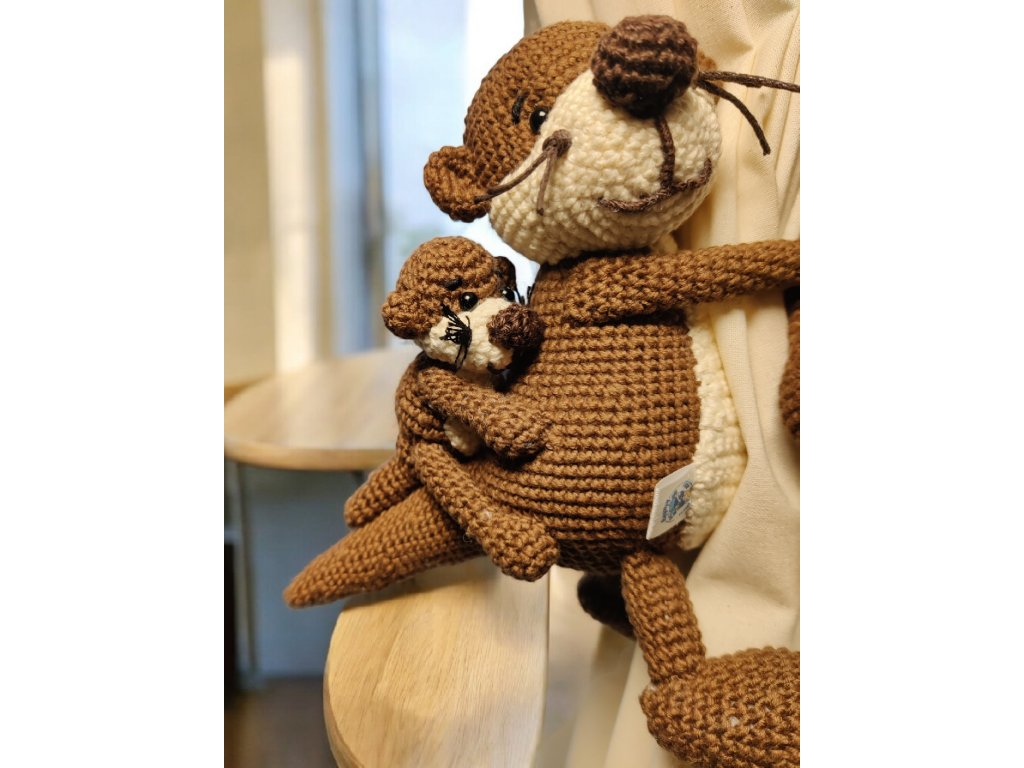 Seznamte se s roztomilou háčkovanou vydrou, kterou pevně objímá její malé mládě držící se zuby i drápky na zádech. Podrobný návod vás provede krok za krokem při tvorbě něžné dekorace nebo originálního dárku, který okouzlí každého milovníka háčkovaných zvířátek.