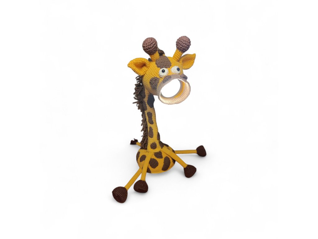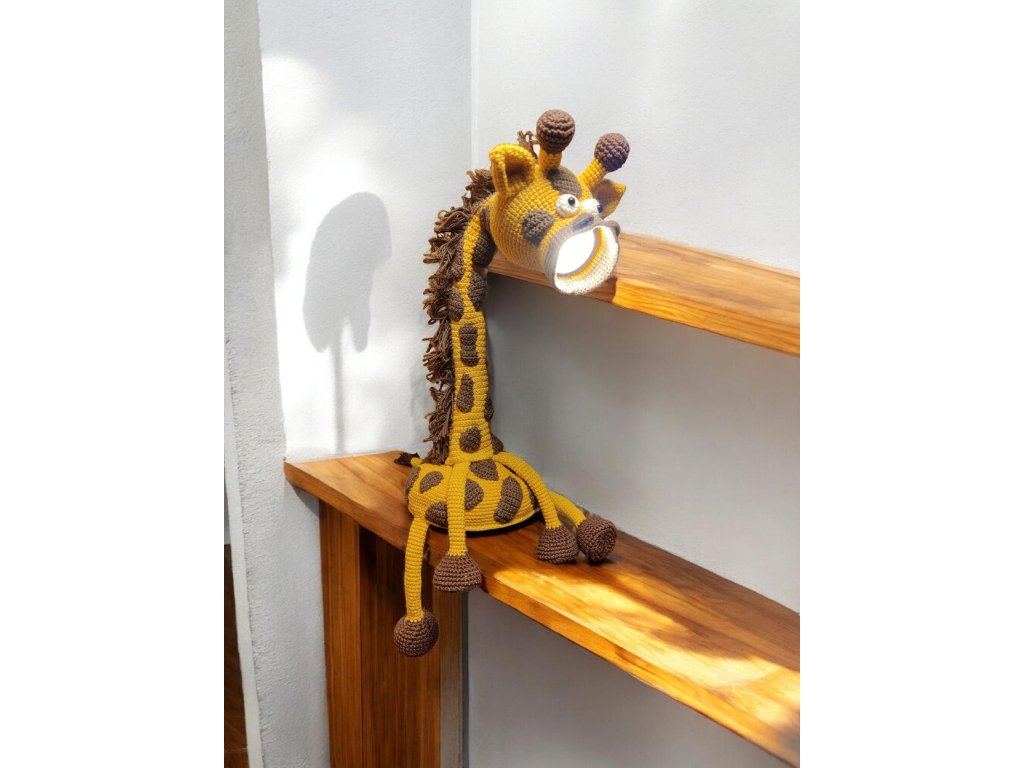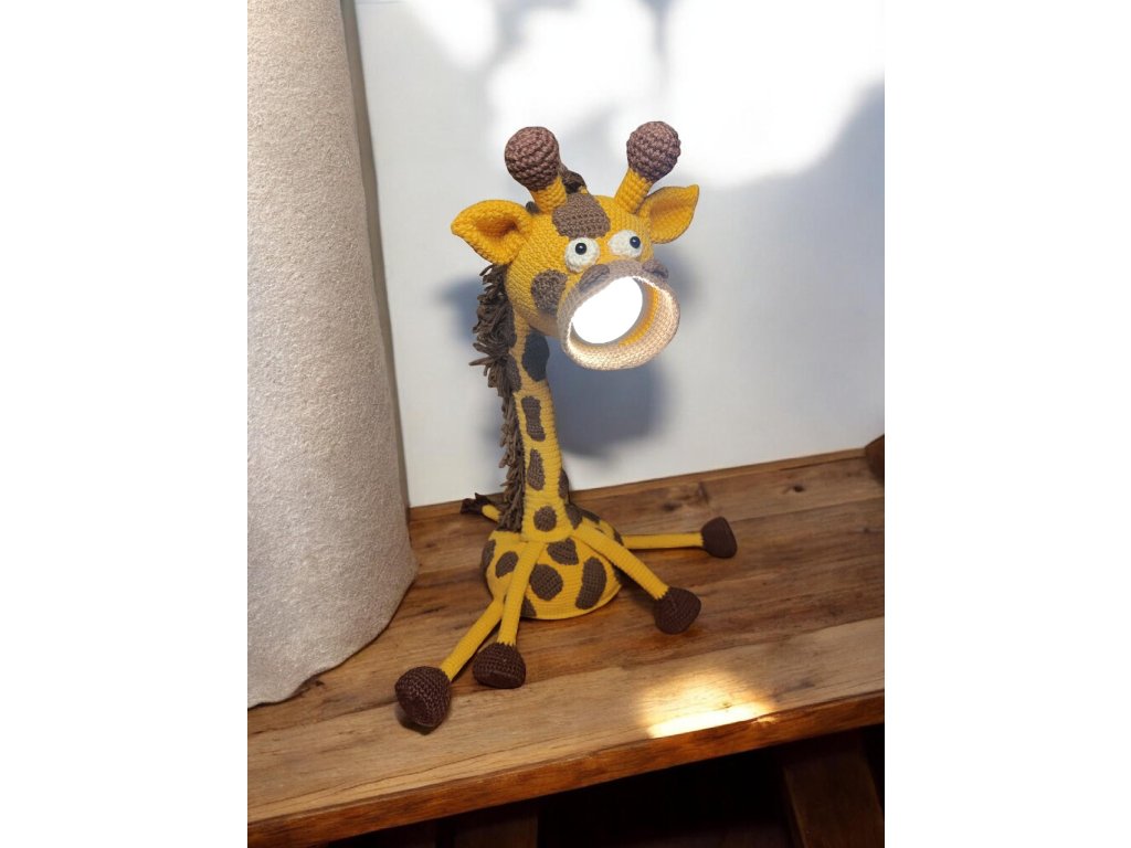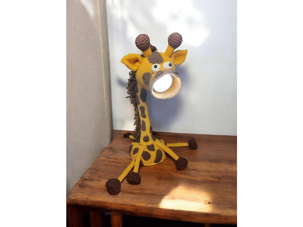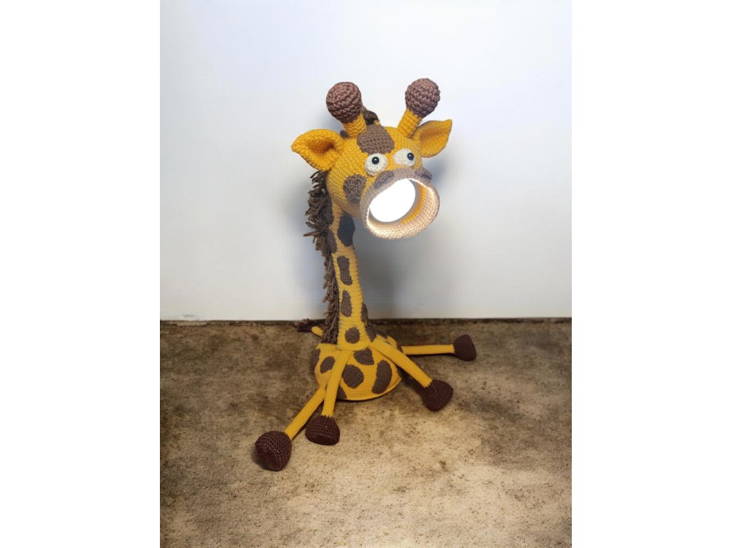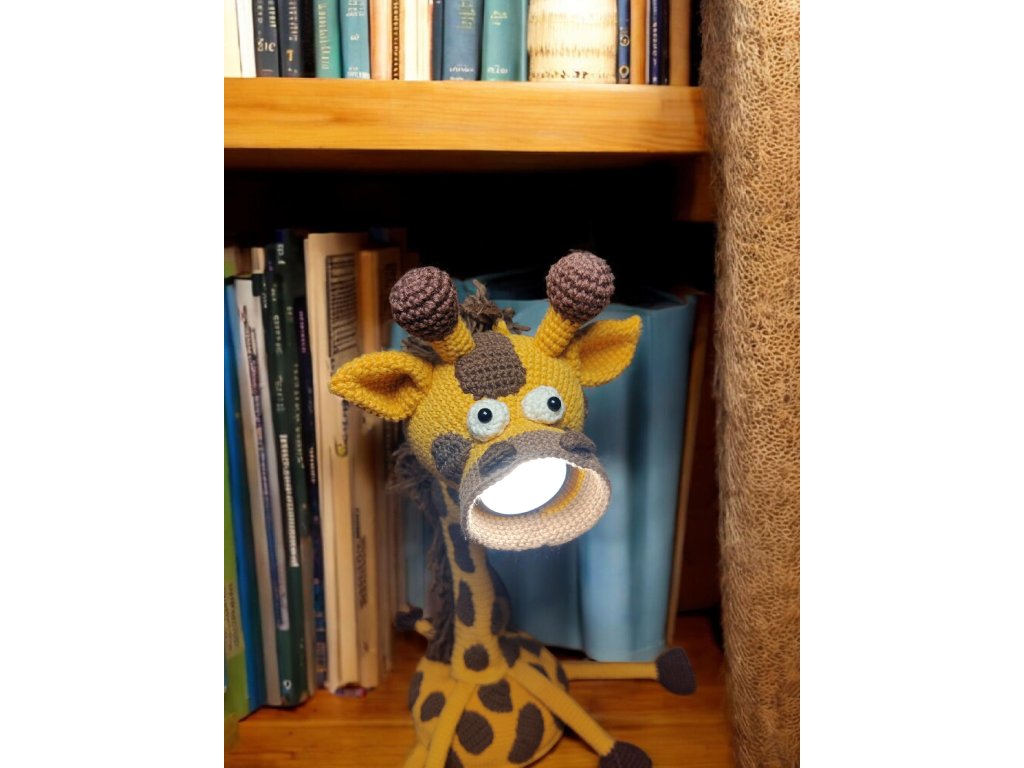 Celá háčkovaná žirafa slouží jako snímatelný obal na lampičku. Lampička, která je součástí, je koupena v Lidlu – konkrétně se jedná o model Briloner LED stolní lampa od značky Briloner.
